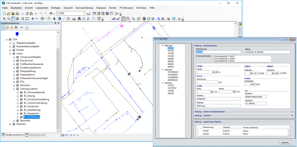 Das FIS Abwasser AS ist eine Erweiterung des LISA LM. Mit seiner Hilfe können unterschiedliche kartographische Darstellungen der abwassertechnischen Objekte auf Basis der Bestands- und Fachdaten erzeugt. werden.