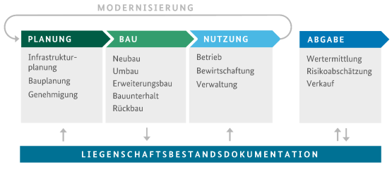 In der Liegenschaftsbestandsdokumentation sind alle während der gesamten Nutzungsphase der Bauwerke und baulichen Anlagen durchgeführten baulichen Veränderungen dauerhaft als Abbild des realen baulichen Bestandes nachzuweisen.
